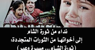 نداء من ثورة الشام إلى أخواتها من الثورات المتجددة: (ثورة الشام… مسيرة وعبر) مصطفى أبو الوفا عندما انطلق ما يعرف بثورات الربيع العربي في تونس ومصر وما أعقبهما، كان الناس، وخاصة النخب المفكرة ومن له اطلاع على الوضع السياسي ومن تقدم به العمر أيضًا في سوريا، يستبعدون أن تقوم الثورة …